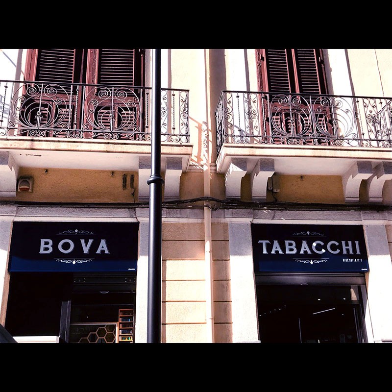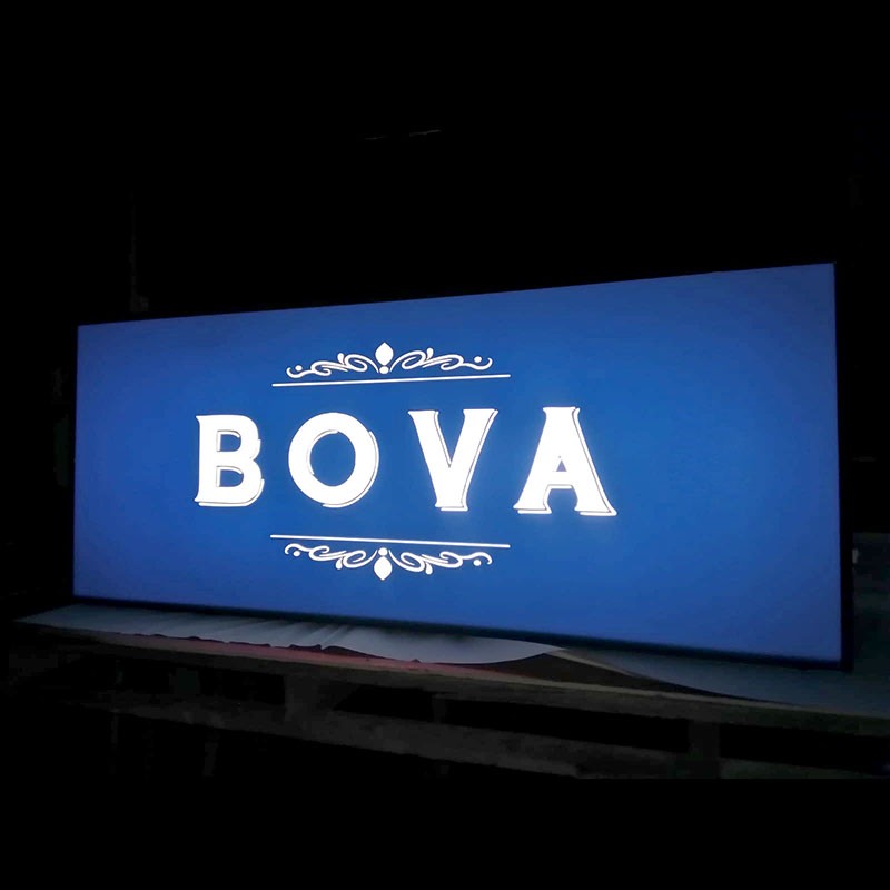 Insegna a cassonetto piano con profili in alluminio color silver.